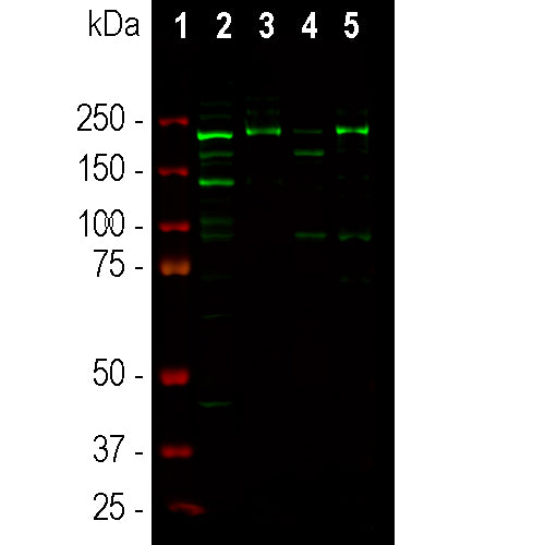 | Immunogen: | The C-terminal 398 amino acids of human ankyrin 3 expressed in and purified from E. coli |